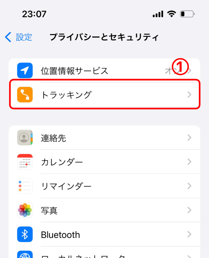 「Appからのトラッキング要求を許可」をOFFにする。(iphone)